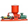 ① 对浆体的搅拌:当防爆电动机处于运转状态时,变速传动系统通过安全离合器驱动搅拌机活动叶片旋转,使得对按水灰比要求加入到搅拌机内的混合物进行不断的掺和,直到混合均匀,实现对浆体的搅拌。在对浆体的搅拌过程中,离合器在操作手柄的控制下处于脱开状态,送浆泵不运转。 ② 对浆体的输送:在浆体搅拌均匀后,操作离合器的手柄使离合器处于接合状态,此时,变速器通过离合器的作用驱动送浆泵(单螺杆泵)转动,送浆泵在转动过程中的抽吸负压将搅拌机内混合均匀的浆体通过吸浆管吸入送浆泵体内,经加压后从泵的出口输出,完成对浆体的输送。