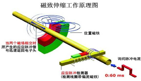 BRL700一体化遥测磁致伸缩水位计数据采集传感器采用磁致伸缩传感器。磁致伸缩传感器工作时,传感器的电路部分将在波导丝上激励出脉冲电流,该电流沿波导丝传播时会在波导丝的周围产生脉冲电流磁场。在磁致伸缩传感器测杆外配有一浮子,此浮子可以沿测杆随液位的变化而上下移动。在浮子内部有一组磁环。当脉冲电流磁场与浮子产生的磁环磁场相遇时,浮子周围的磁场发生改变从而使得由磁致伸缩材料做成的波导丝在浮子所在的位置产生一个扭转波脉冲,这个脉冲以固定的速度沿波导丝传回并由检出机构检出。通过测量脉冲电流与扭转波的时间差可以地计算出浮子的实际位置,终计算出水位值。然后根据水位值计算出流量值。