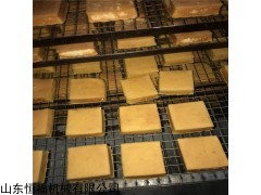 豆块烟熏机器先将压好裁成块的豆腐干放在我们提供的烟熏推车托盘上,一般烟熏推车根据型号和产量上面可放置5-20个盘子,将每层的盘子/筛子全部摆满豆腐干。注意:每块直接要留一公分的间隙。将放满豆腐干的推车推到豆干烟熏炉里面。关上炉门,通过豆干烟熏炉左侧控制按钮或者PLC 电脑控制面板,设定温度和时间,即可升温,表皮稍微烘干后打开发烟开关,豆块烟熏机器烟雾即可在烟熏炉炉体内部烟熏豆腐干。烟熏时间到后自动报警,关闭发烟开关,打开排烟开关,将烟雾排到室外后,打开烟熏炉,即可看到烟熏完成的豆腐干。