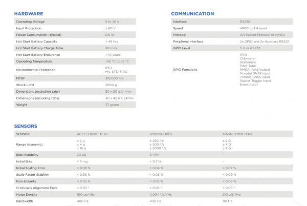 ADVANCED NAVIGATION Spatial 微型组合导航系统是一款坚固耐用的微型GNSS/INS组合导航系统,可以在苛刻的条件下提供准确的位置、速度、加速度和姿态方位信息。它包含经过温度补偿的加速度计、陀螺仪、磁力计、气压计和的卫星导航接收机,这些通过一套复杂的融合算法耦合,使其能够提供准确和可靠的导航定位信息。
