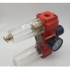 空气过滤减压阀设计轻小,安装方便,因此,它与气动变送器,气动调节器等产品安装在一起配套使用。若将空气过滤器的减压阀设计成一个整体,成为二联件。 气源处理三联件包括空气减压阀、过滤器、油雾器三大件,减压阀可对气源进行稳压,使气源处于恒定状态,可减小因气源气压突变时对阀门或执行器等硬件的损伤。过滤器用于对气源的清洁,可过滤压缩空气中的水份,避免水份随气体进入装置。油雾器可对机体运动部件进行润滑,可以对不方便加润滑油的部件进行润滑,大大延长机体的使用寿命。