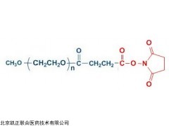 本产品为羟基末端活化为琥珀酰亚胺琥珀酸酯的单甲氧基聚乙二醇(mPEG)修饰剂,与活性药物的自由氨基键连,它的反应活性较高,但是由于和PEG主链连接的是酯键,因此在强碱或强酸条件下,酯键易断裂水解,使活性基团的含量下降