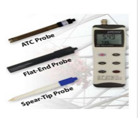 快速方便地测得土壤或水的PH,可以测试你的灌溉水和土壤样本,也可以同时显示测量的电压值。三种探头可供选择,测量不同样本,选择不同的探头。ATC探头适用于测量液体,平底探头和探头适用于土壤测量。