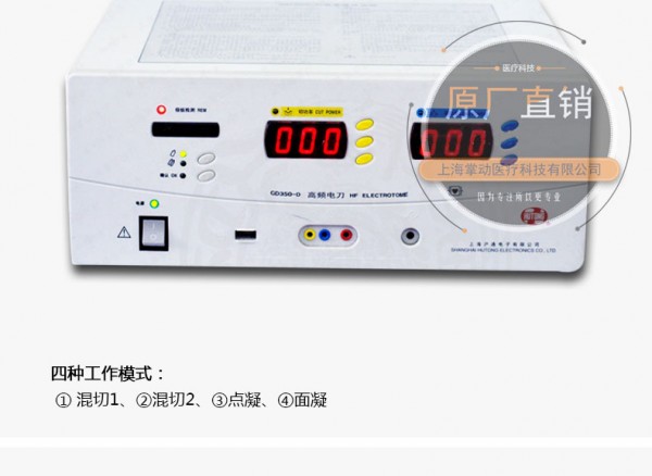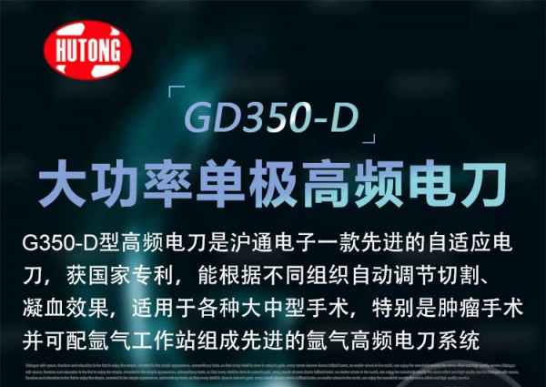 GD350-P型高频电刀,具有切、凝合一功能,即可手控也可脚控,适用于中小型手术,低功率下也可用于微创手术