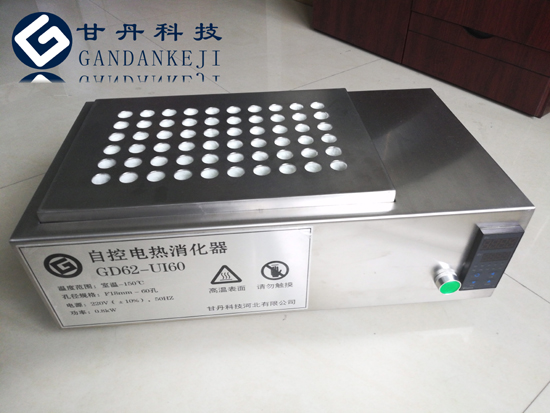3 温度范围:GD62-UI60型尿碘消化炉:室温~150℃,温度数字显示,消化炉与温控器一体。