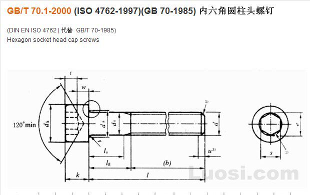 产品参数对照表:GB/T70.1
