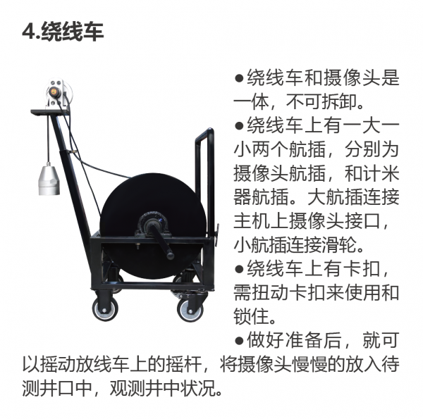 ②计米器开关:可打开/关闭计米器的电源,在用户不用记米时候可关闭,从而使仪器电量消耗更少。