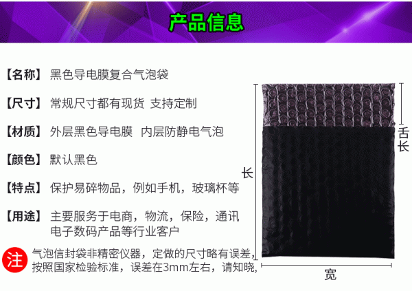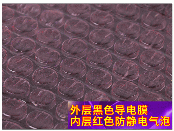 导电膜复合防静电气泡袋是在防静电气泡膜基础上,复合导电PE膜后加工制成。它适宜于对静电敏感程度较高的电子产品的包装。根据膜层结构不同,可分为单面复合气泡袋和双面复合气泡袋。也可以复合白色透明气泡袋。其中导电膜表面电阻:103-105Ω 。