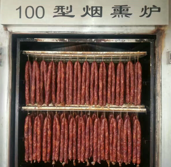 四.的烟熏炉取消了探火孔汽封结构,不需要水套来产生高压蒸汽,炉体水套压力变为常压。送风机能够随时开停,炉温可以自动控制。