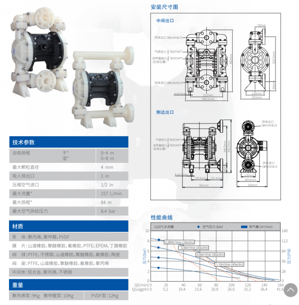 MORAK系列气动隔膜泵具有以下特征: