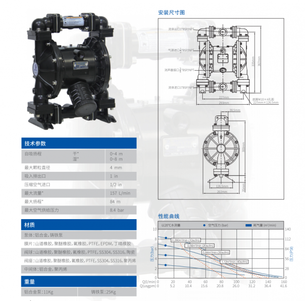MORAK系列气动隔膜泵具有以下特征: