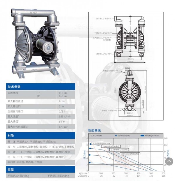 MORAK系列气动隔膜泵具有以下特征: