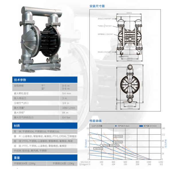 MORAK系列气动隔膜泵具有以下特征: