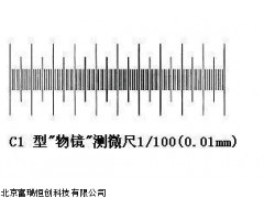 物镜测微尺是一标淮刻尺,其尺度总长为1mm,分为100等分,每一分度值为0.01mm,即10μm刻线外有一直径为Φ3,线粗为0.1mm的圆,以便调焦时寻找线条。刻线上复有厚度为0.17mm的盖玻片,保护刻线久用而不损伤。