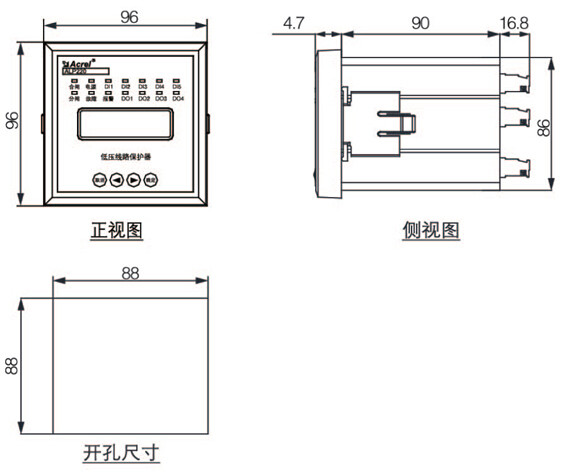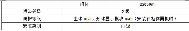 防护等级 主体IP20,分体显示模块IP45(安装在柜体面板时)