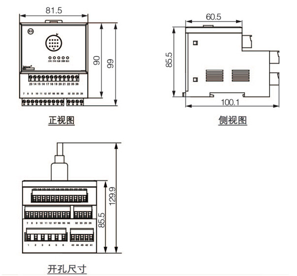 2)外形与开孔尺寸(单位:mm)