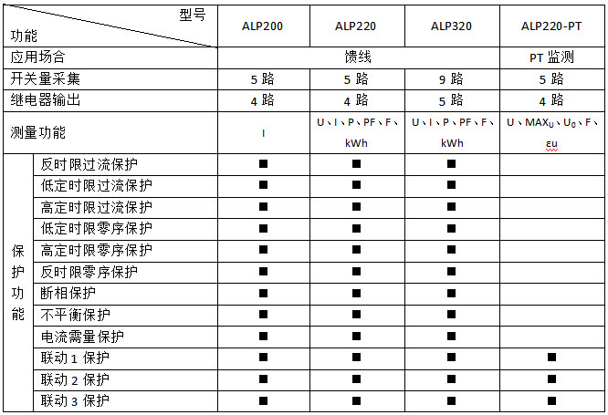 ALP系列低压保护器集保护、测量、控制、总线通讯为一体,同时提供了远程自动控制、现场直接控制、面板指示、信号报警、操作记录、跳闸报警记录及开关量记录等功能。适用于煤矿、石化、冶炼、电力、船舶、以及民用建筑等领域。