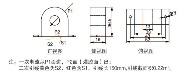 100A及以下专用电流互感器外形尺寸