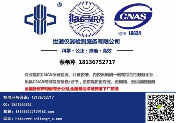 江苏世通仪器检测服务有限公司注册资本1000万元,实际投资资本超过3000万元,并建有标准规范化科室,实验室占地面积近万平米,专业仪器校准设备1000余套。校准实验室的计量检测范围涉及长度、温度、湿度、理化、力学、电磁、无线电、光学、声学、时间频率等十大领域,覆盖98%以上的工厂。大多数工程师来源于中国计量学院或从事多年仪器校准行业的资深人员,他们常年接受中国计量学院和多地计量院(所)专家的培训与考核,造就了一批专业素质精良,工作认真严谨的工程师队伍.在证书的制作上采用的是ERP管理系统,实行标准化和专业化操作,是国内zui具规模和实力的权威校准机构.