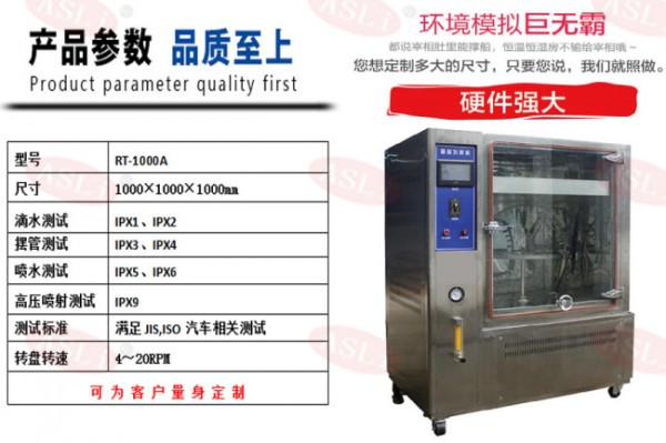 ip65防水防尘检测设备(淋雨试验机)乃测试汽机车灯具、雨刷性能、车动窗马达、防水条带、车用开关、防盗装置、机车仪表、汽机车锁头、国防工业之导航系统、鼻锥状体、雷达锥顶及航天工业之耐雨水试验。