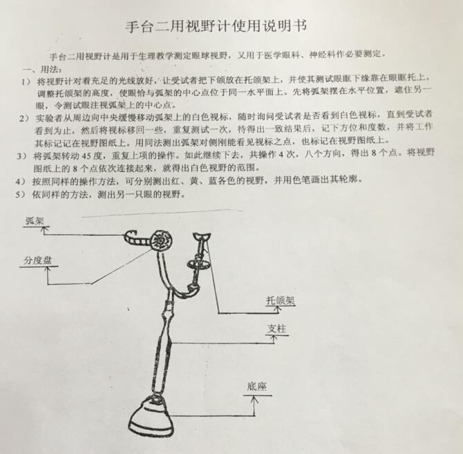 用于生理教学测定眼球视野,又用于医学眼科神经作必要测定.