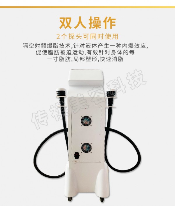 1、射频加热技术:强大的射频能量,每秒400万次的能量交换,能瞬间使脂肪层骤然升温达45-60度,从而使脂肪引爆.