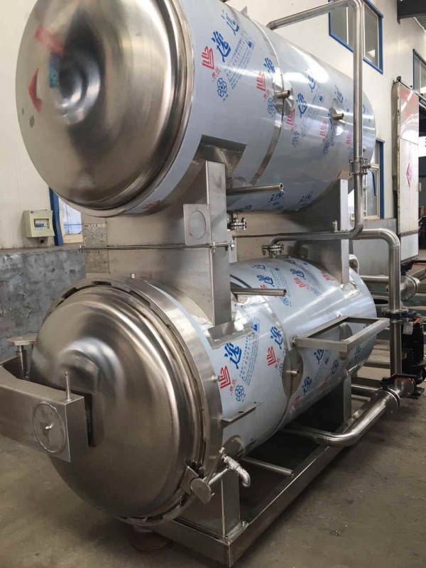 杀菌锅是采用双罐热水循环进行杀菌,杀菌槽事先将热水加热到灭菌要求温度(多阶段灭除外),从而缩短了灭菌时间,提高工作效率
