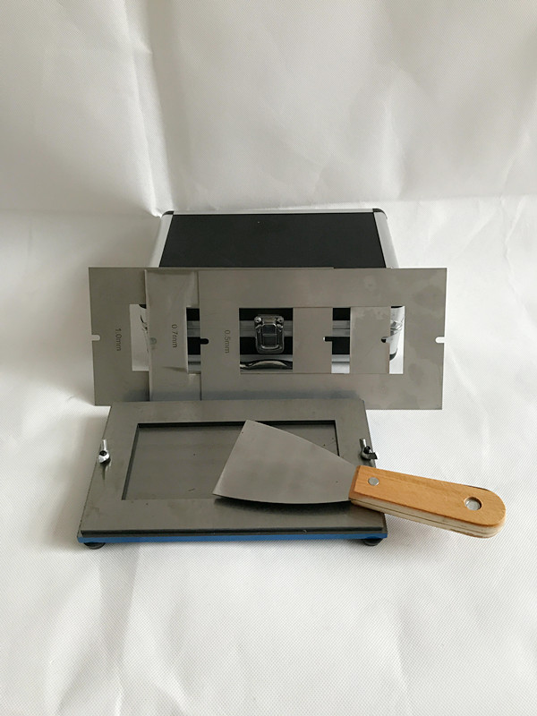 产品介绍:腻子涂刮器是根据GB1727—79《漆膜一般制备法》中的涂刮法设计制造的。腻子涂刮器适用于在各种底材(马口铁板、钢板、铝板)上均匀地制备腻子涂膜及厚漆涂膜,以备测定漆膜的一般性能。