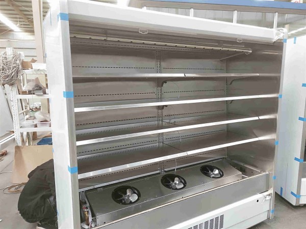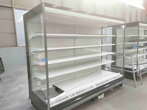 風幕櫃正常設定的溫度在2~8度之間,在超市裏主要放飲料,酸奶,牛奶,真空包裝的肉食,熟食,水果等,不適合放裸裝食品。