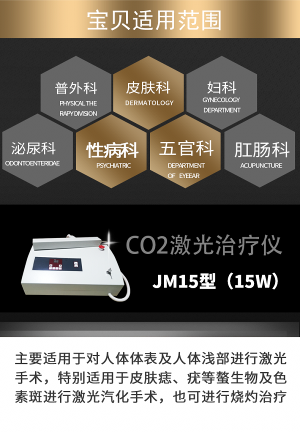 嘉光 二氧化碳激光治疗仪 JM15 15W 主要适用范围: