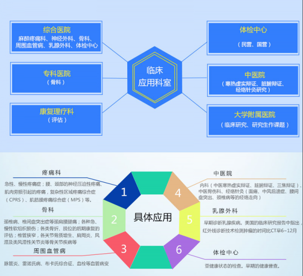 ③疗效评定:药物作用后炎症状态 、代谢状态、血液循环状态的改善评估,传统疗法、现代疗法的疗效考证和研究等。