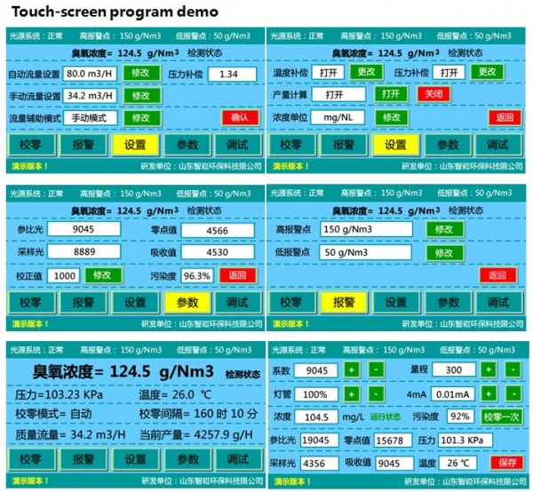 台式臭氧气体浓度分析仪 触摸屏 依据朗伯—比尔定律,中华人民共和国环境标准《环境空气臭氧的测定-紫外光度法》、华人民共和国建设部《水处理用臭氧发生器》的检定及标定方法来设计制造。通过测量臭氧对紫外光吸收前后的光信号强度变化,由此计算出当前臭氧浓度值。设备使用的双光路紫外光源系统,内设有灯管智能管理系统,开机后可使紫外灯管迅速达到测量状态,采用国外分离式光池技术,设备具有无泄漏、耐压高、耐大流量采样气体冲击、易清洁、维护方便、操作简单、使用成本低等特点。主要用于连续检测各种工业环境下的臭氧气体,也可用于检测运行中的管道、容器等环境的臭氧气体。广泛应用于制药、化工、市政、污水处理等行业,对臭氧发生器出口浓度和臭氧发生器产量测量。