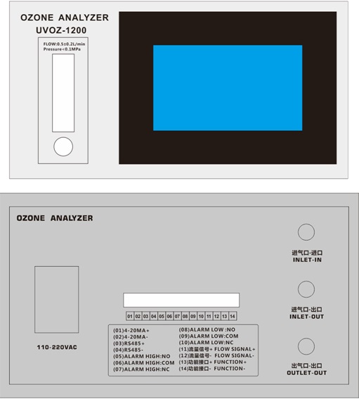 出气口-出口:臭氧分析仪的出口,已内置臭氧破坏器,出气口无臭氧味道,可室内排放。