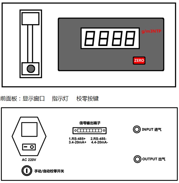 前面板:显示窗口 指示灯 校零按键