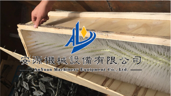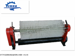 毛刷清扫器 煤矿皮带输送机毛刷清扫器 散装码头无动力毛刷清扫器清扫过程中不会造成胶带跑偏现象,安全可靠、使用寿命长、维修费用低。清扫器工作时,清扫点连续接触,清扫有力,清扫效果好。尼龙刷采用杜邦公司生产产品、经过特殊工艺加工制作,不粘料、不结垢。对胶带无磨损 公司专业生产各类皮带清扫器,带式输送机输送的材料往往带有粘性物质,如煤尘、泥浆、粉状物料,其中一部分会粘在输送带工作面上,在卸料时不能卸掉,粘着物料便进入空载段的下托辊上,把托辊弄脏并粘有这些附着物。物料进入托辊壳体内,从而增大轴承座上的径向载荷和轴向载荷,使轴承快速磨损,甚至造成托辊停转,造成托辊磨损报废。托辊壳体粘上物料会撕裂和拉毛输送带的面胶,加速输送带磨损毁坏。如果粘着物进入机尾改向滚筒,就会粘在滚筒表面上,越粘越多,附着力也越来越大,结果是造成输送带跑偏,增加输送带磨损,酿成严重后果。输送带上残留的物料还会加大对滚筒的摩擦力,有时会引起输送带面胶和滚筒包胶层的撕裂。如果清扫装置良好,托辊、输送带等的使用寿命都可以延长。由此可见,清扫器在带式输送机上有着不可忽视的作用。在运行中,如果想人为清除机尾滚筒附着物,可能发生严重人身伤亡事故。因此,为保证带式输送机正常运转,必须将输送带上的附着物清扫干净。在引进、消化和吸收技术的基础上,结合外各种清扫器的优点,研制开发了电动毛刷式皮带清扫器,辊刷采用进口耐磨材料特制而成,正常使用寿命一年以上,可更换,该产品以后的使用成本仅为更换滚刷的费用,大节约使用成本。毛刷式皮带清扫器具有清扫彻底,不刮伤皮带,维护方便,使用寿命长等优点,产品自投放市场以来,在电厂输煤皮带、化工、制糖、制药、港口码头等行业得到广泛应用,效果显著。可适用于各种类型及宽度的传送带。,延长胶带使用寿命。