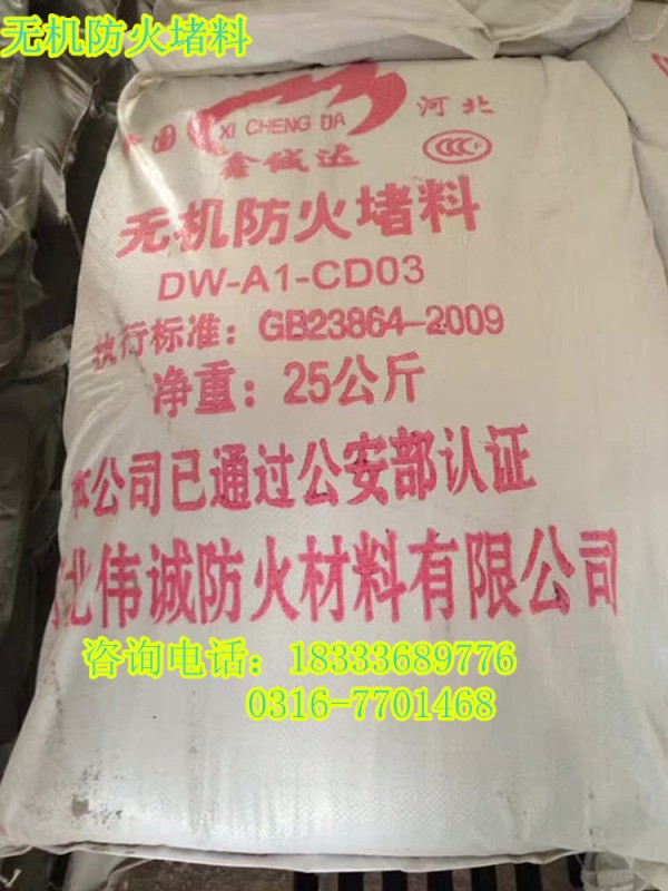 DW-A1-CD03无机防火堵料在固化前有较好的流动性和分散性,对于多根电缆束状敷设和层状敷设的场合,采用现场浇注这类堵料的方法,可以有效地堵塞和密封电缆与电缆之间,电缆与壁板之间各种微小空隙,使各电缆之间相互隔,阻止火焰和气体及浓烟扩散。无机防火堵料属于不燃材料,在高温和火焰作用下,基本不发生体积变化而形成一层坚硬致密的保护层,其热导率较低,有显著的防火隔热效果。