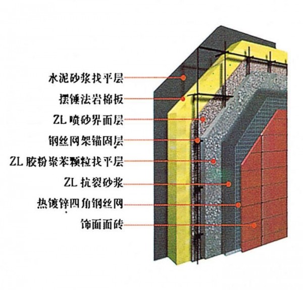 2.系统构造主要包括:粘结层、保温层、抹面层、饰面层及配件。饰面层应采用饰面砂浆、装饰灰浆等轻质功能性涂层或有良好透气性的水性外墙涂料。