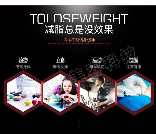 射频电波直达皮肤深层脂肪层,使水分子,油脂剧烈运动,新排列脂肪结构,并且深度的溶解顽固脂肪,缩小脂肪团的体积,脂肪团吸收射频热能后迅速分解为游离脂肪酸,异化为二氧化碳和水。溶解的脂肪经淋巴、肠道、两便、呼吸被排出体外,从而达到明显的瘦身效果。