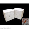 陶瓷纤维主要成分为Al2O3和SIO2。其中高铝型陶瓷纤维模块中的Al2O3含量较高,是在52%~55%,属于喷吹纤维,和甩丝纤维也有不同,喷吹纤维丝直径较细,一般为2.0~3.0μm ,纤维丝长度较短,一般为100~200mm,由于纤维较细,导热系数优于甩丝纤维,在组块制作的折叠过程中易破碎和撕裂。另一方面高铝型具有较高含量的Al2O3,在以电热为热源的窑炉中要避免使用,以免导电造成人员和财产的损失,后果不可估量。在一般情况下标准型较为常用,但这也要根据窑炉的温度来选择陶瓷纤维模块的型号。