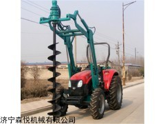 电线杆挖坑机特点:50型或65型拖拉机作为住动力,动力充沛,越野能力强适合与野外挖坑工作。电线杆钻孔机采用全液压驱动形式,向下钻孔的同时由两条大吨位油缸推动钻头向下钻入,大大的提高了工作效率,水泥杆钻眼机采用前置式结构,一个人即可完成工作。