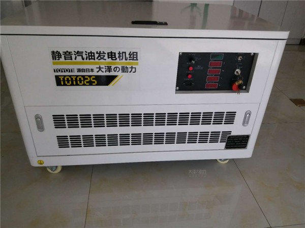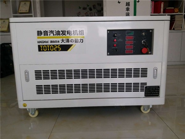 医院用全自动25kw汽油发电机 小功率汽油发电机组由于体积小,方便携带,广泛作为生活生产的应急备用电源及野外作业电源。汽油发电机组是由汽油发动机拖动发电机向外部负载供电,发电机供电电压与频率受发动机转速影响,要求发动机加装凋速器在额定功率范围内具有稳定转速,保证发电机供电质量稳定,并减小由发动机转速波动引起的噪声。传统的机械式调速器结构复杂,并存在瞬时调速率和稳定率较差、过渡时间长等缺点,已不能适应发电机组的供电要求。电子凋速器调速具有调速性能稳定、控制范围宽、灵活方便等优点,代表着调速器的发展趋势。