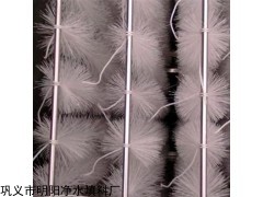 盘锦污水池用挂膜弹性填料 本厂立体弹性填料筛选了聚烯烃类和聚酰胺中的几种耐腐、耐温、耐老化的优质品种,混合以亲水、吸附、抗热氧等助剂,采用特殊的拉丝,丝条制毛工艺,将丝条穿插固着在耐腐、高强度的中心绳上,由于选材和工艺配方精良,刚柔适度,使丝条呈立体均匀排列辐射状态,制成了悬挂式立体弹性填料的单体。