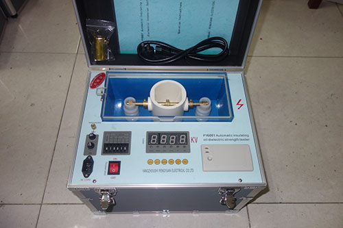 (4)断电状态下,将测试样油装入油杯试油注入油杯时,应徐徐沿油杯内壁流下,以减少气泡,在操作中,不允许用手触及电、油杯内部和试油。试油盛满后必须静置10~15分钟,方可开始升压试验;