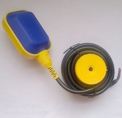 用途:浮球控制液位开关是一个能够调节桶,槽,或井中的液位开关。它可自动调节,1、将浮球开关的电缆线从重锤的中心下凹圆孔处穿入后,轻轻推动重锤使嵌在圆孔上方的塑胶环因电缆头之推力而脱落。(如果有必要的话,也可用螺丝起子把此一塑胶环拆下)。再将这个脱落的塑胶环套在电缆上你所想固定生重锤以设定液之位置。易于操作,便于安装,安全可靠,免于维修,环保,可以回收。它对水有抵抗作用,广泛应用于家庭,厂矿等的水池,油,酸和碱的池,桶,槽,罐等容器中。如串联两个控制器,一个放至水塔,一个放至水井来控制泵,就能防止因水源不足开空泵而损坏水泵设备;也可以以三个控制器串联,一个放至水塔,一个放至过滤池和另一个放至河水(水井)能同时控制两台水泵设备。