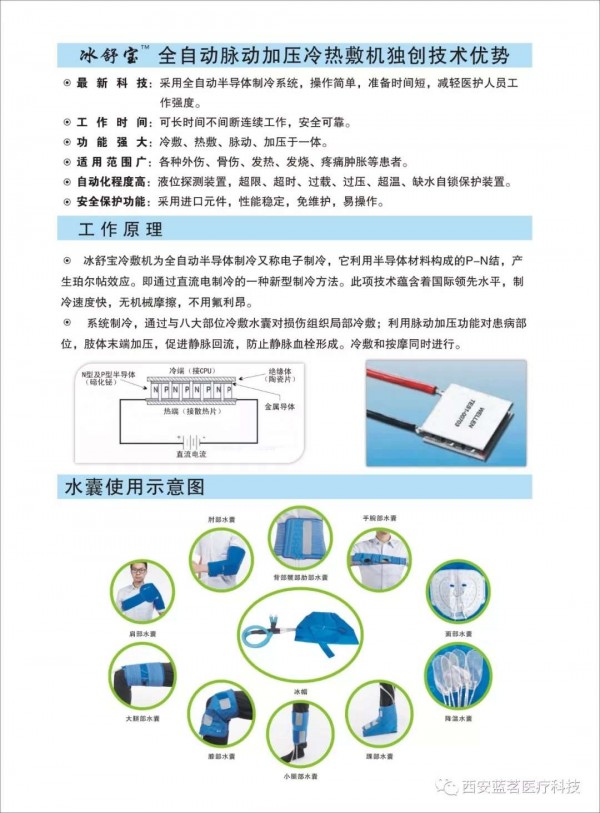 脉动加压冷热敷机BS200-4生产厂家 采用全自动半导体制冷,热系统,制温速度快,免维护,对环境没污染。操作简单,准备时间短,减轻医护人员工作强度。
