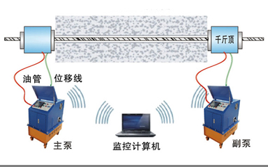 3、主机将设置好的张拉参数,及动作命令无线信号传输给副机。主副机互相联动按并照设置好的压力以及位移进行自动张拉