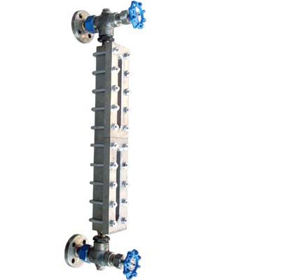 根据连通器原理,将容器内介质液位引至外部玻璃板液位计,并从透明玻璃表面读得液位实际高度。仪表阀杆密封填料采用柔性石墨压环,故密封性能更佳。