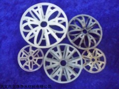 花环填料也称梅花环填料是由许多圆环结绕而成,由于填料的空隙处能有较高的持液量,可使塔内液体的停留时间较长从而增加了气液两相的接触时间,提高了填料的传质效率。聚丙烯填料具有空隙率大,压降和传质单元高度低,泛点高,汽液接触充分,比重小,传质效率高等特点,多用于气体洗涤、净化塔中。
