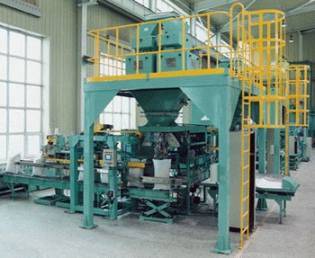 生产过程中的自动供袋器、取袋、装袋、夹口整形、折边缝口、输送机、封袋、