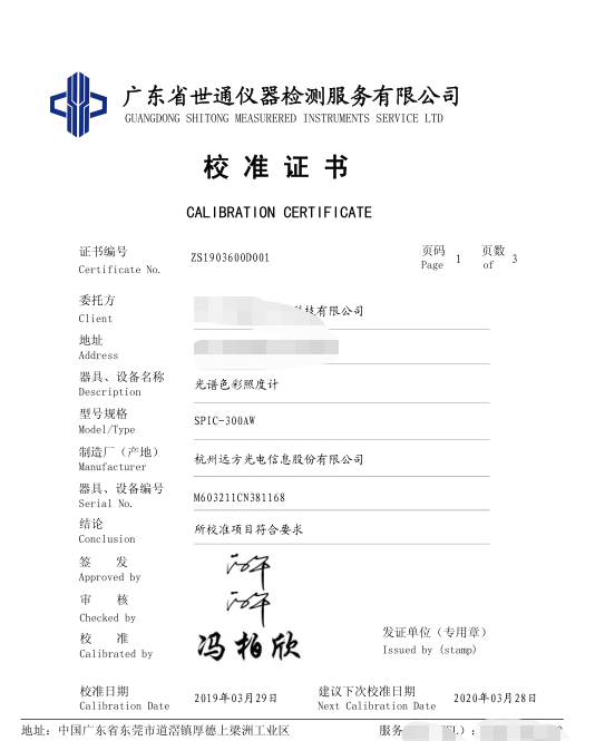 d.现场完成校准到核发证书一般为5个工作日(特殊情况可加急处理)。